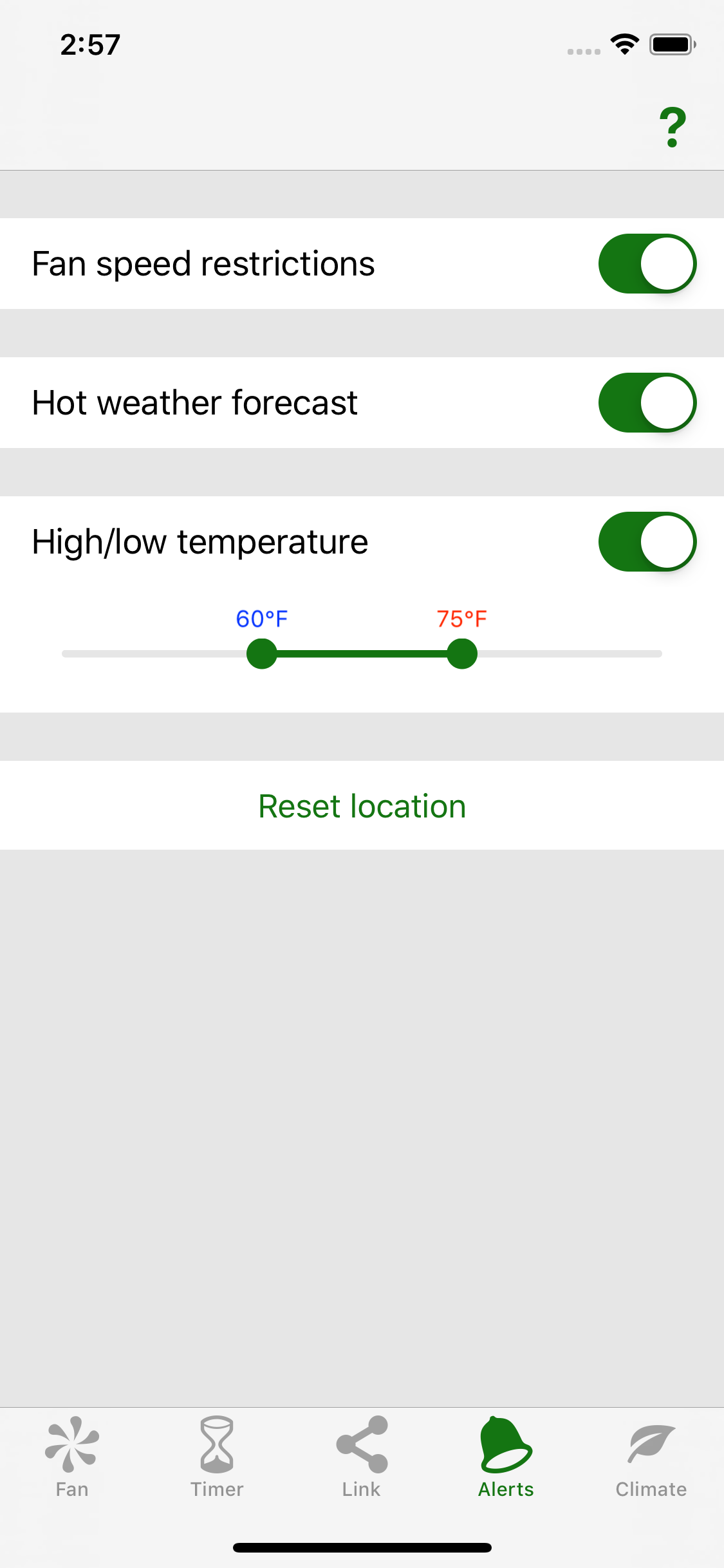 The pre-cool feature presented additional challenges. I wanted to 1) reliably activate the fan in the dead of night; 2) not wake the user; and 3) accomplish the task in as many app states as possible (i.e. not launched, running in the background, suspended). I evaluated three options: