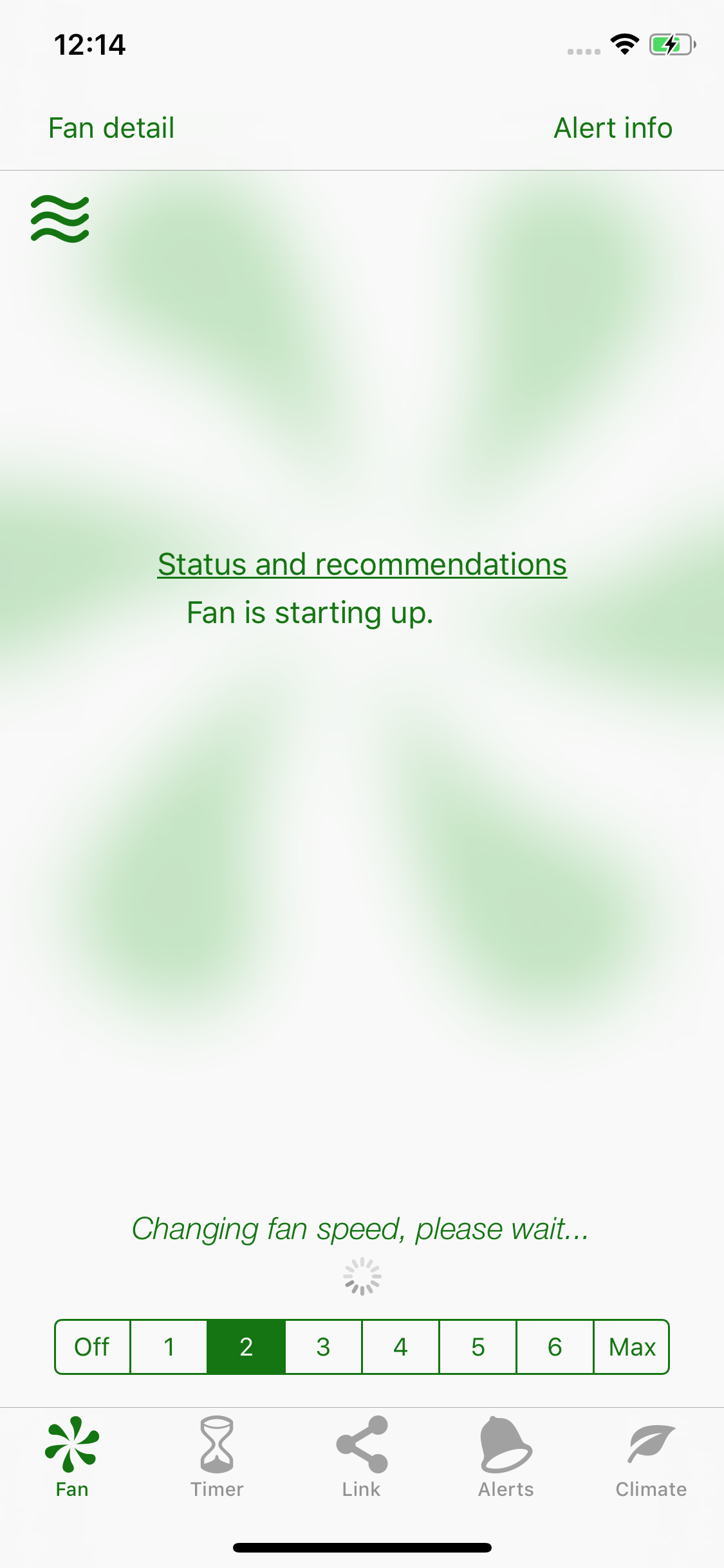 Version 2 of the app is now available on the app store. You can download it and use the simulator to see how it works. I tried to make the simulator match the fan's behavior as much as possible, including the fan's finicky API. So, for example, when you first start the fan the app will not immediately respond. That's because the fan itself has not responded with a status update.